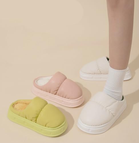 Rungion Furry House Slippers for Women Men Warm Soft Indoor Slippers Waterproof Puffer Slides Winter Outdoor 7