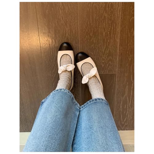 ZQW Women's Bow Ballet Flats Closed Round Toe Mary Jane Shoes Comfortable Leather Casual Non-Slip Daily Dressy Work Travel 6