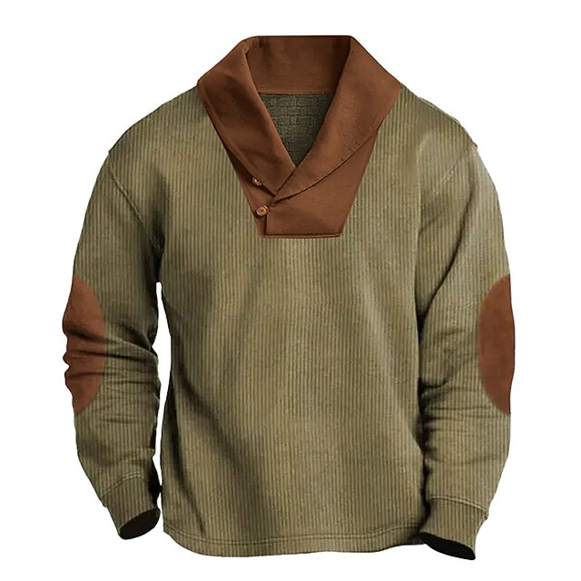 More information about Men's Corduroy Shirt Polo Shirt Casual Sports Lapel Long Sleeve Vintage Old Money Style Color Block Patchwork Spring & Fall Regular Fit Blue Brown Green Corduroy Shirt