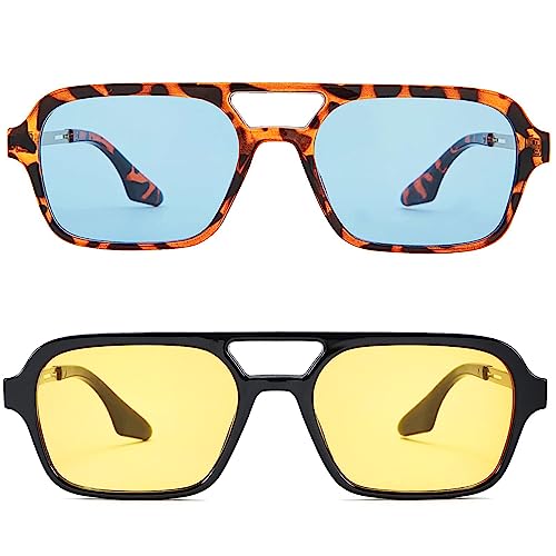 More information about Hycredi Retro 70s Flat Aviator Sunglasses Trendy Vintage Square Glasses for Women Men Metal Design Shades UV Protection