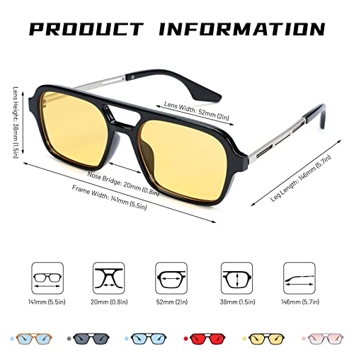 • ULTRA-LIGHT AND ULTRA-THIN FRAMES - These retro square sunglasses are made of ultra-thin metal materials, so the frames are super light but very strong. These weights are only 23 grams(0.81oz), so you will feel very comfortable and no pressure on your nose