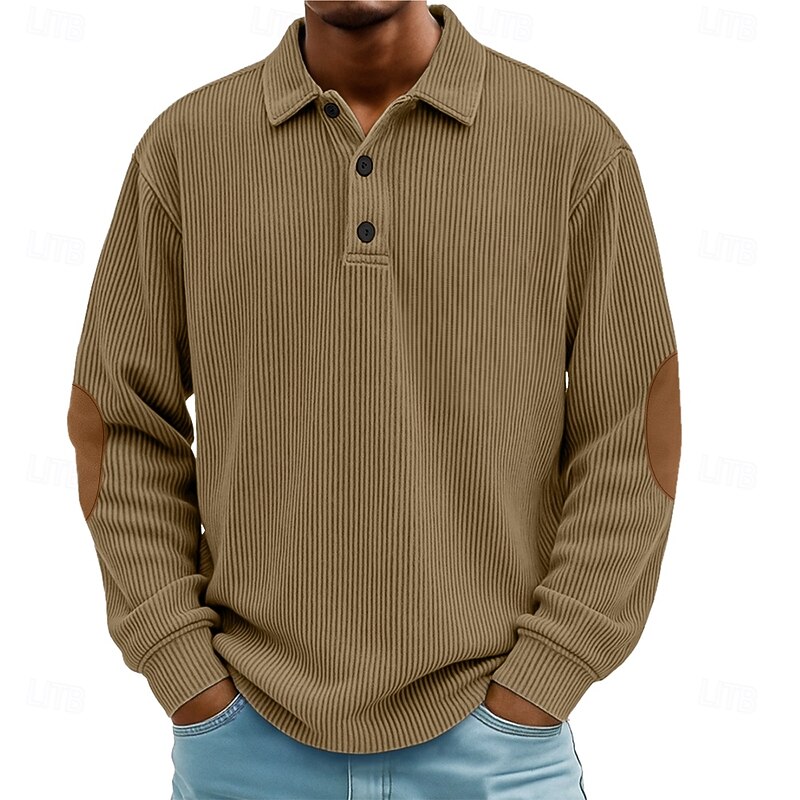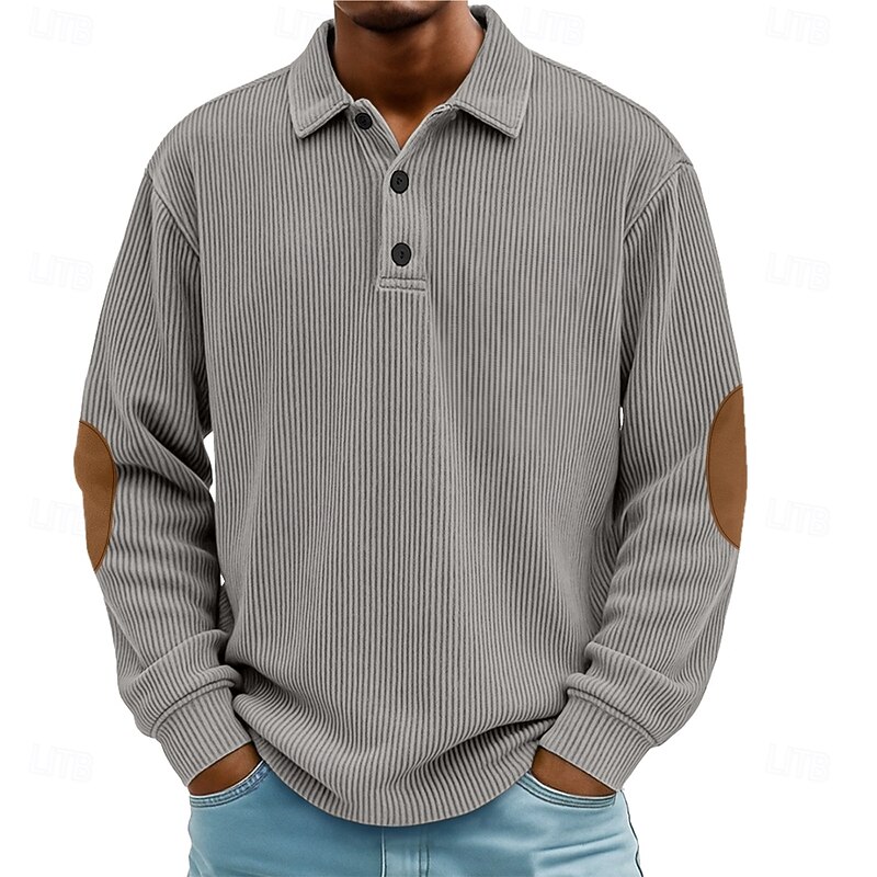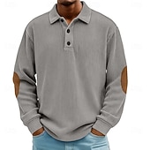 More information about Men's Polo Corduroy Shirt Casual Sports Lapel Long Sleeve Fashion Basic Color Block Patchwork Buttons Spring Fall Fall & Winter Regular Fit Black Blue Green Khaki Gray Polo