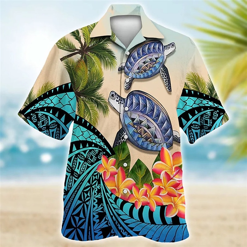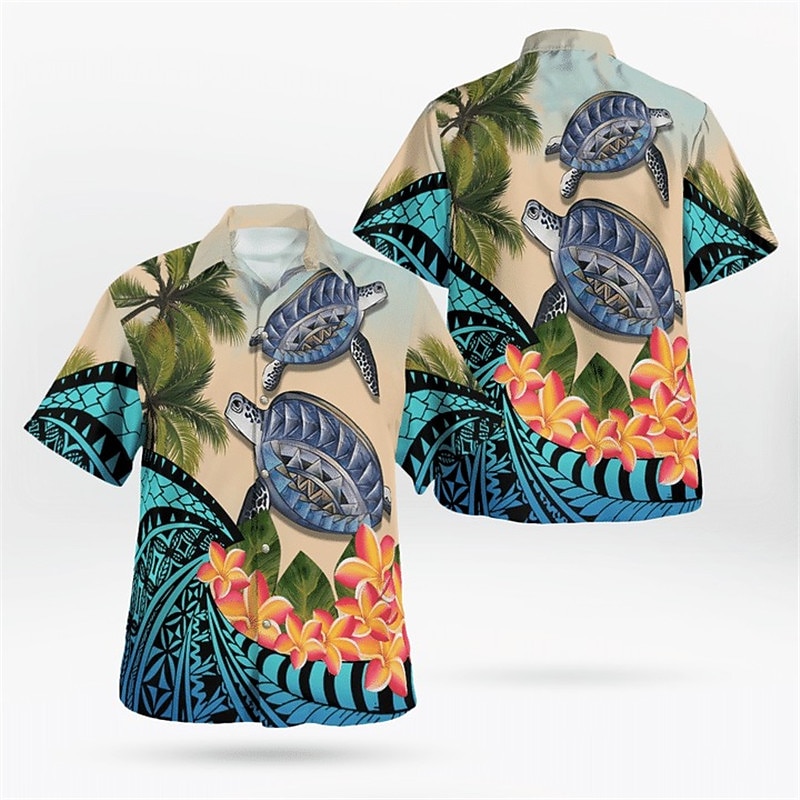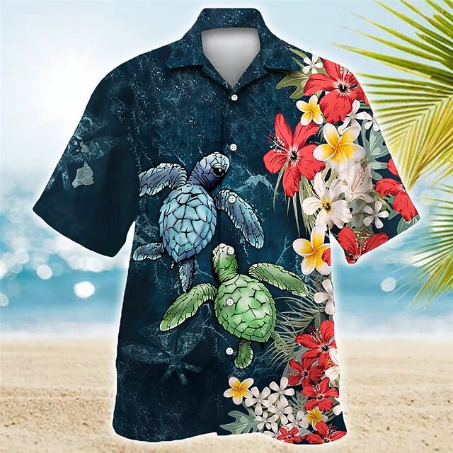 Men's Tropical Flowers Totem Turtles Shirt Summer Hawaiian Shirt Aloha Shirt Short Sleeve Shirt Cuban Collar Sports Fashion Streetwear Outdoor Casual Hawaiian Navy Blue Blue Purple S M L 10