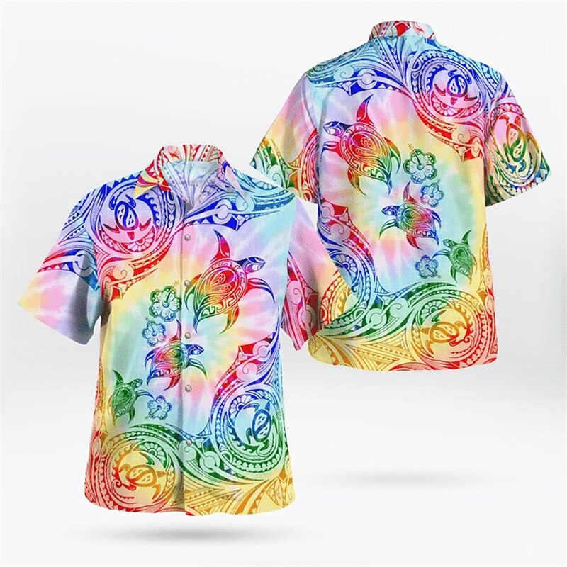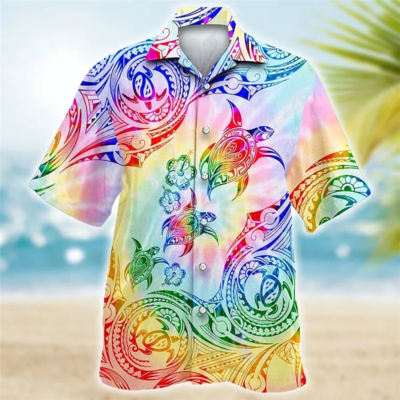 Men's Tropical Flowers Totem Turtles Shirt Summer Hawaiian Shirt Aloha Shirt Short Sleeve Shirt Cuban Collar Sports Fashion Streetwear Outdoor Casual Hawaiian Navy Blue Blue Purple S M L 6