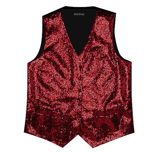 More information about Barry.Wang Mens Sequin Vest Tie Clip Bowtie Set V-neck Shiny Waistcoat Pocket Square Lapel Pin Party Prom Tuxedo 6PCS