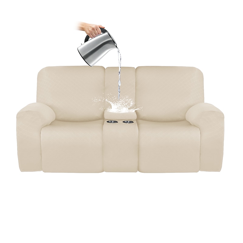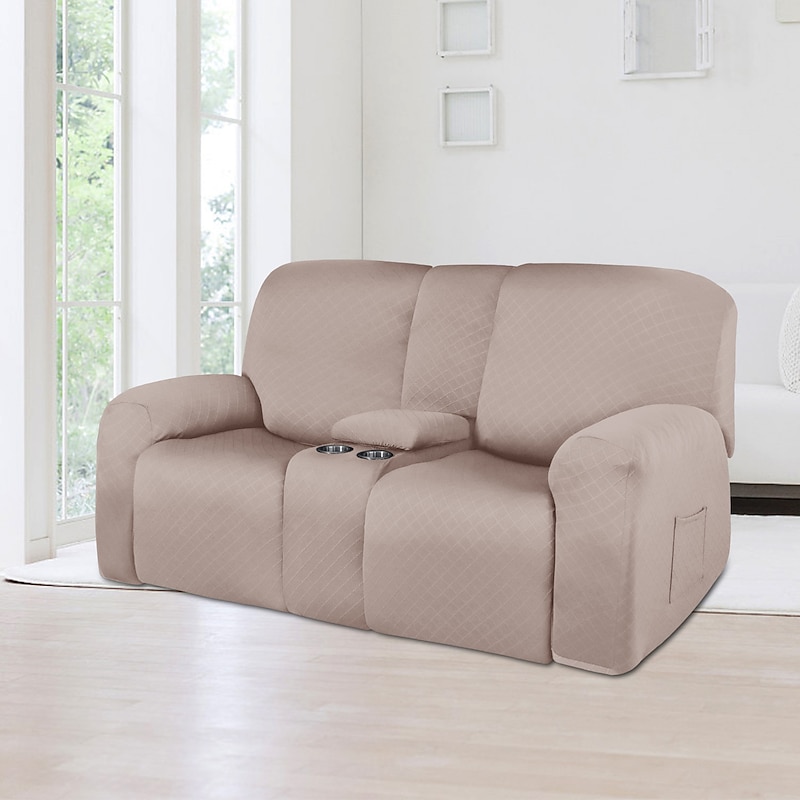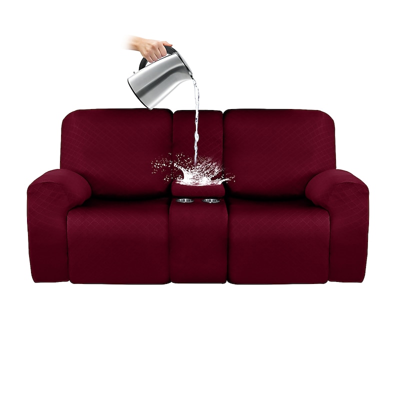 Waterproof Recliner Covers Burgundy Loveseat with Middle Console Slipcover8-Piece Stretch Loveseat Reclining Sofa Covers 2 seat Loveseat Recliner Cover Thick Soft Washable Loveseat Slipcovers