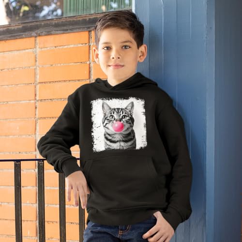 Bubblegum Cat Kids' Hoodie - Cute Cat Hooded Sweatshirt - Animal Lover Gift Hoodie for Kids 6