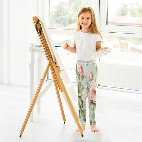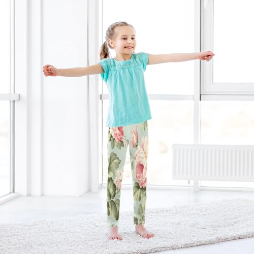 Bolaz Toddler Girls Leggings Printed Yoga Pants Leggings Pink Peony for Kids 7