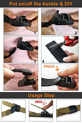 • NO HOLES ADJUSTABLE BELT: Removable buckle with no holes strap design, you can easy to cinch anywhere you want. If these nylon belts strap too long for you, easy take off the buckle, then cut and heat-seal to your desired waist size