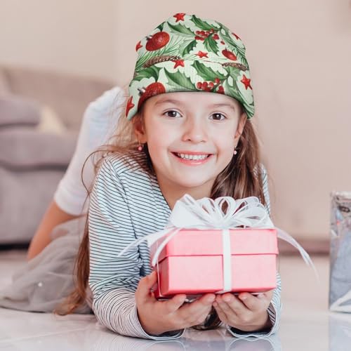 Christmas Holly Berry Pattern Kids Beanie Hat for for Girls Boys Children Cap Winter Knitted Chemo Cancer Headwear Accessories Gifts Decoration Black 1