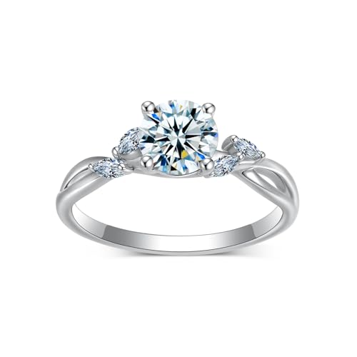 • ABOUT THE RING - Real 925 sterling silver(plated 18k white gold). Lead-free, nickel-free and non-allergenic, will not be allergic to the skin. Main stone: 1 carat Moissanite(round cut); side stone: small moissanites, Clarity: I1;Color: D Level.