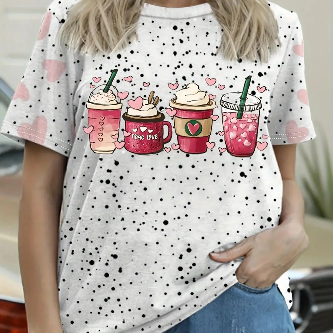After a few days, the Plus size women's stylish coffee cup and love-printed graphic round neck women's T-shirt is practical and I’m satisfied.