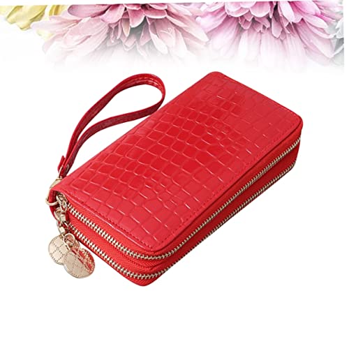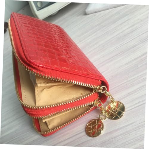 More information about Large Capacity Double Zipper Patent Leather Wallet for Women Stylish Red PU Leather Long Purse RFID Blocking and Multiple Compartments