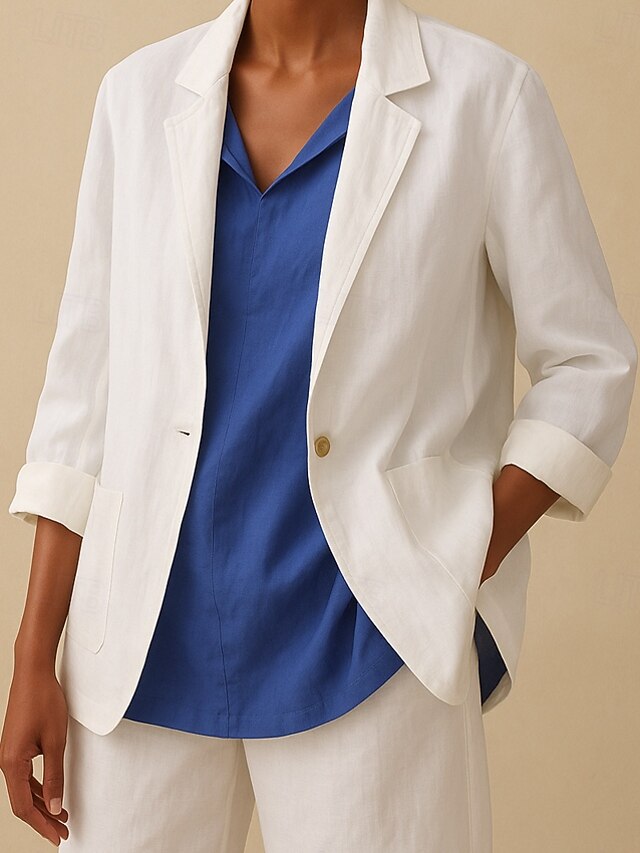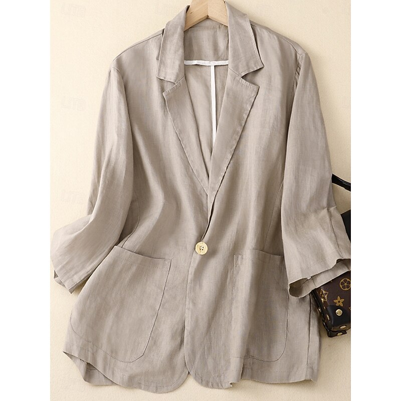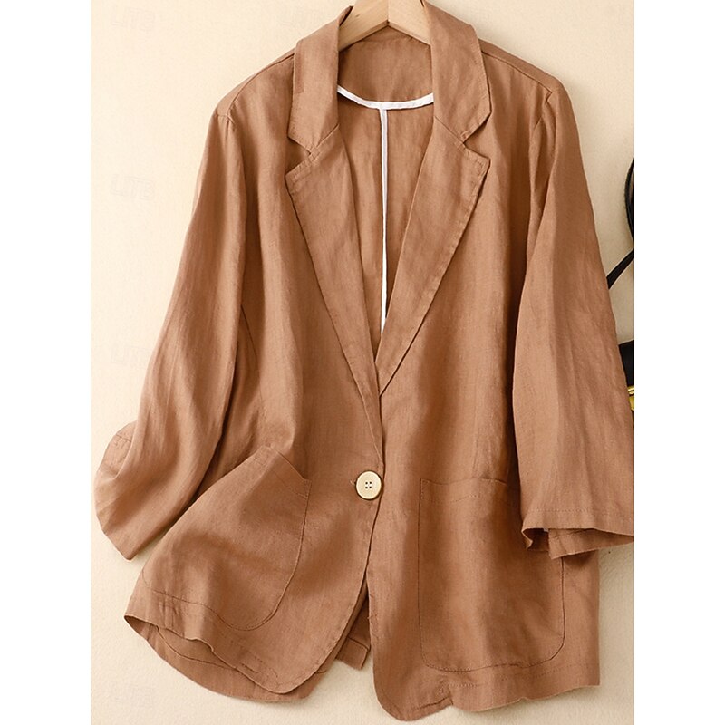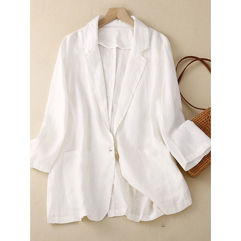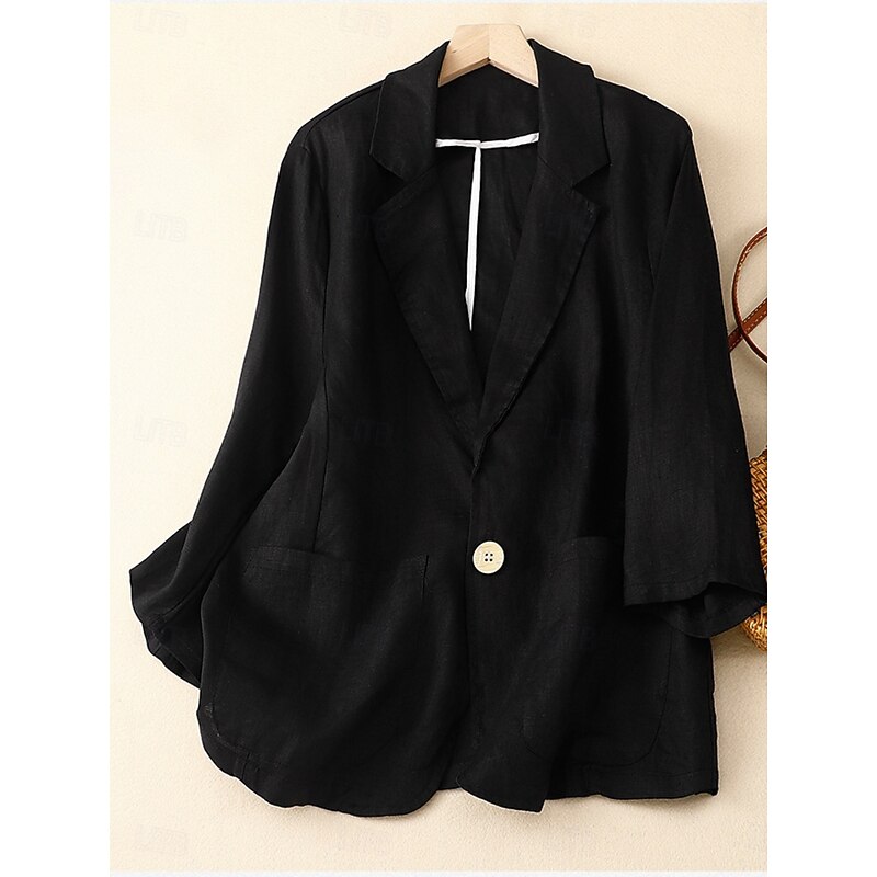 $30.99 - Women's Cotton Linen Blazer Comfortable Breathable Pocket Buttons Vintage Casual Plain Office Street Casual Daily Wear Single Breasted Regular Turndown Regular Fit Long Sleeve Outerwear Black 2025. Shop for cheap Shirts online? Buy at lightinthebox.com on sale today!