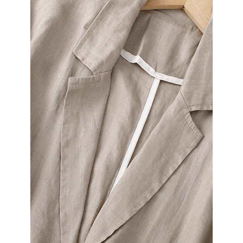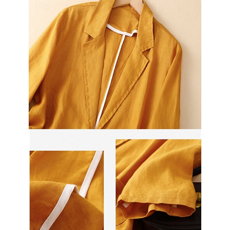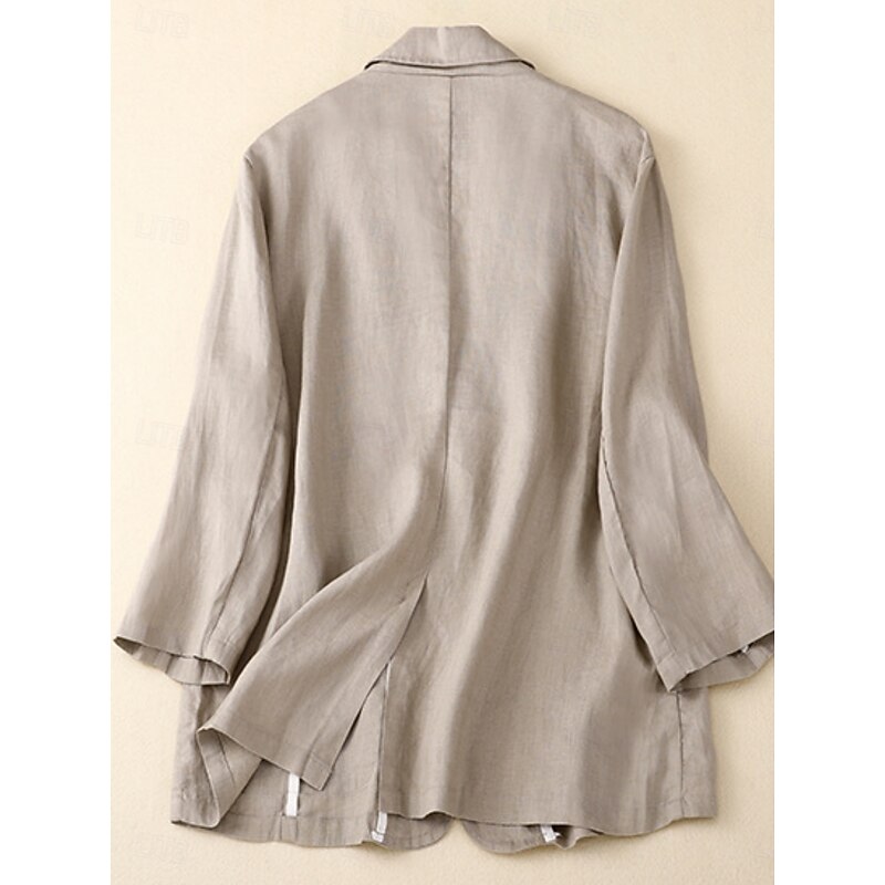 More information about Women's Cotton Linen Blazer Comfortable Breathable Pocket Buttons Vintage Casual Plain Office Street Casual Daily Wear Single Breasted Regular Turndown Regular Fit Long Sleeve Outerwear Black
