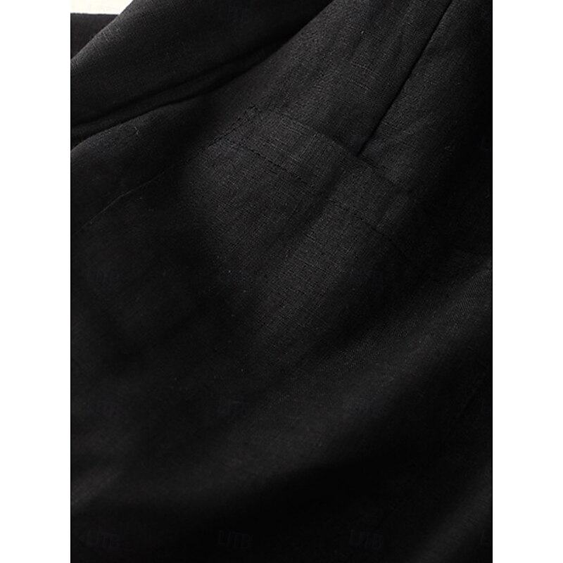 Women's Cotton Linen Blazer Comfortable Breathable Pocket Buttons Vintage Casual Plain Office Street Casual Daily Wear Single Breasted Regular Turndown Regular Fit Long Sleeve Outerwear Black 8