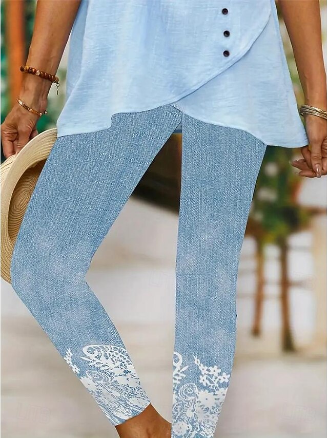 More information about Women's Leggings Vacation Vintage Fashion Ankle-Length High Waist Floral Graphic Printing Soft Breathable Stretchy Vacation Casual Daily Robin's Egg Blue Spring Slim Fit