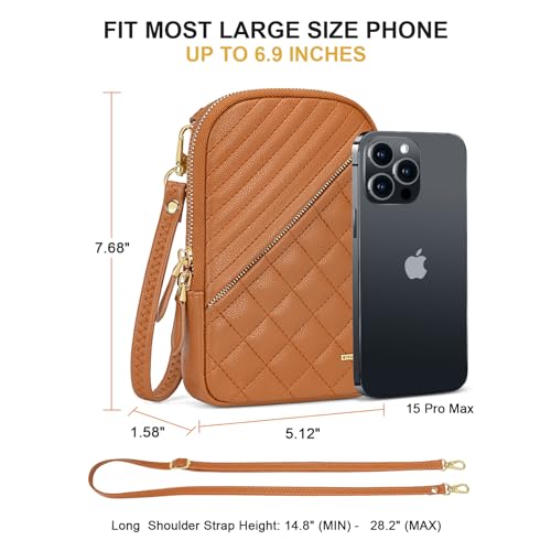 • [Well-Construction]: Phone crossbody bag has a double zipper main compartment ,including 6 card slots ,a slip pocket ,a keychain , easy access to essential cards, key, lipstick,passport,cash and classify your small items. Exterior, 1 front zippered change pocket,a back cell phone pocket fits most cell phones Not larger than 6.9''.Size: 5.12"(L) x 1.58"(W) x 7.68"(H).