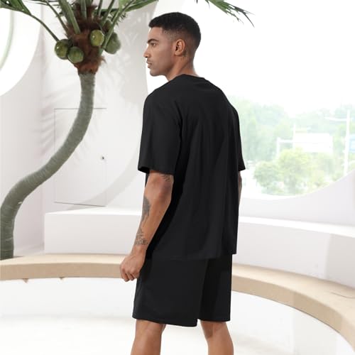 Men's Cotton Oversized T-Shirts Casual Loose Short Sleeve Crew Neck Basic Tops Solid Athletic Tee