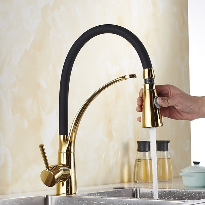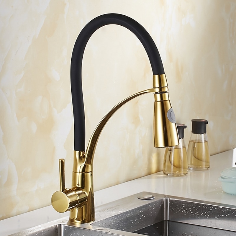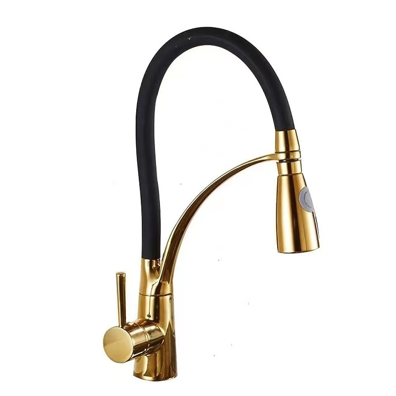 Single Handle Kitchen Faucet, Electroplated One Hole Pull Out/Centerset/Tall/­High Arc, Brass Kitchen Faucet 1