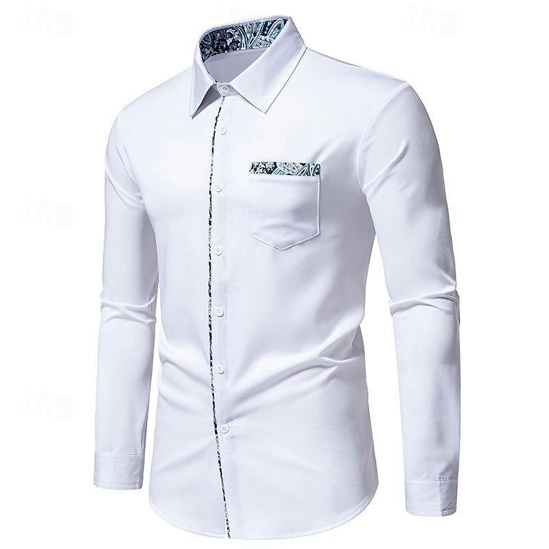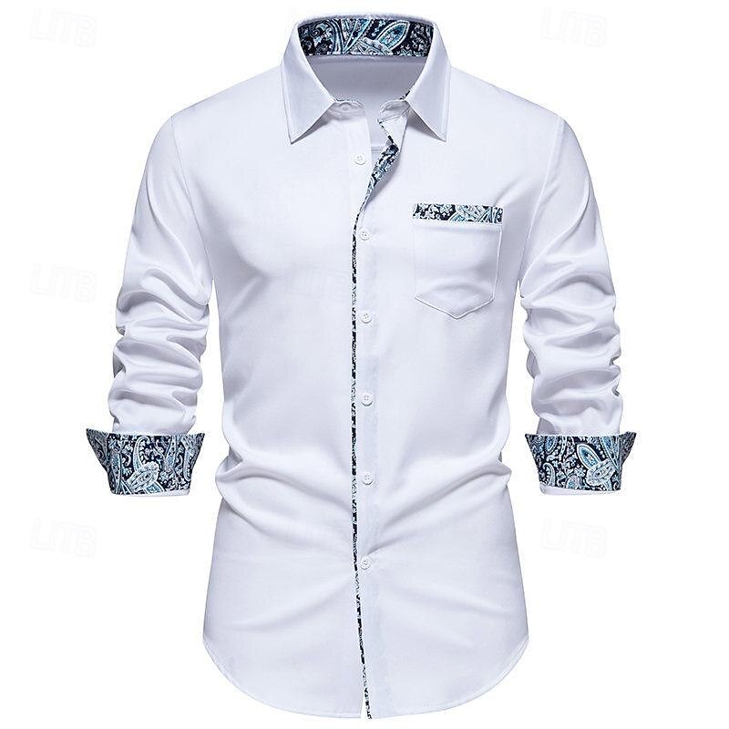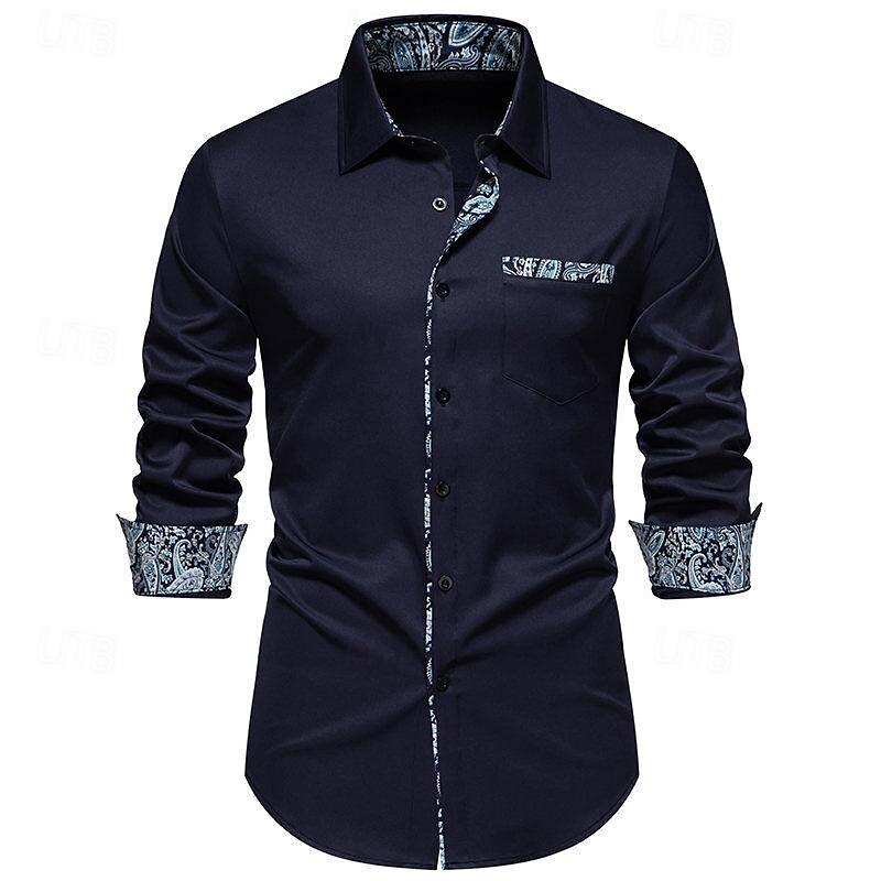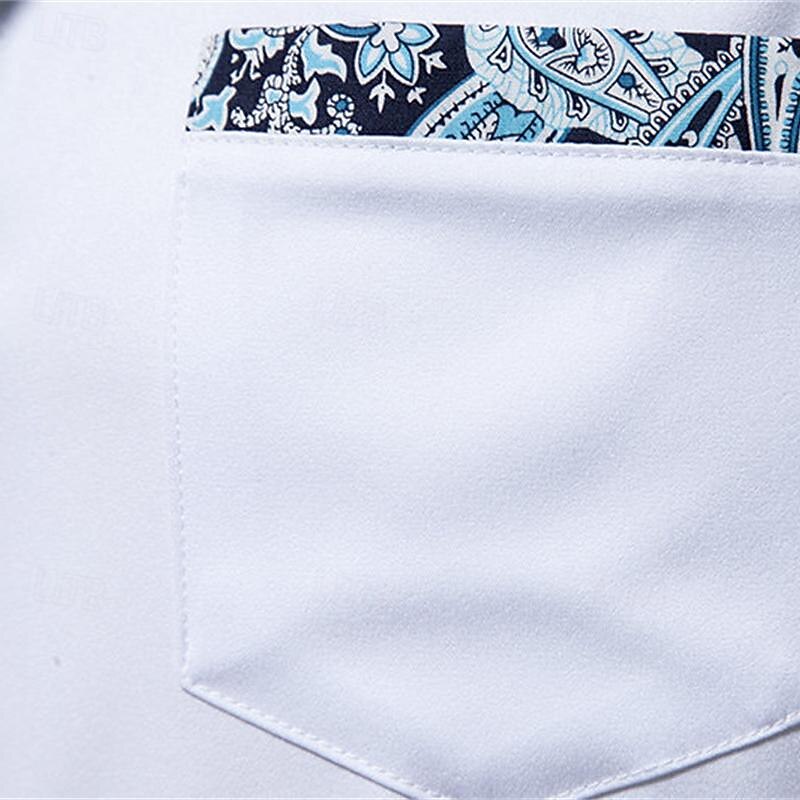 Highlights [Fabric] : Expertly crafted from a high-quality polyester blend, this men's shirt promises a comfortable, lightweight feel and reliable durability, perfect for everyday wear or special outings in spring and fall. [Fit] : Designed with a slim-fit silhouette, this shirt flatters the modern man's physique, offering a tailored look that enhances confidence and style. [Design Highlights] : Showcasing a distinctive paisley print on the inner collar, placket, and cuffs, this shirt adds a touch of elegance and personality. The lapel neckline and button-down front further contribute to its classic appeal, while a single chest pocket adds practical convenience. [Occasions] : Ideal for a range of settings, this versatile shirt is suitable for vacations, beach outings, casual daily activities, and holiday celebrations. It effortlessly transitions from casual streetwear to a more polished look for Hawaiian-themed events. [Size Range] : Available in a wide range of sizes from S to 2XL, ensuring a perfect fit for various body types and preferences.