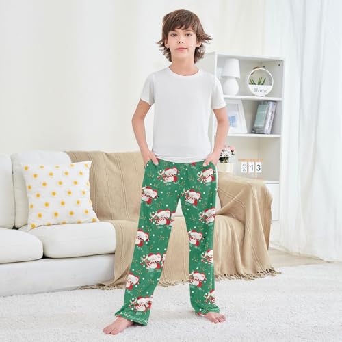 ZZXXB Merry Xmas Santa Claus Reindeer Boys Long Pants Soft Trousers Elastic Waist Kids Lounge Bottoms with Pockets S-XL 2
