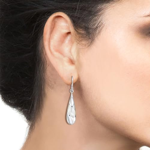 • Timeless Teardrop Silhouette – Crafted from polished sterling silver, these teardrop-shaped earrings feature a graceful curve that flatters the neckline and adds subtle elegance to your look.