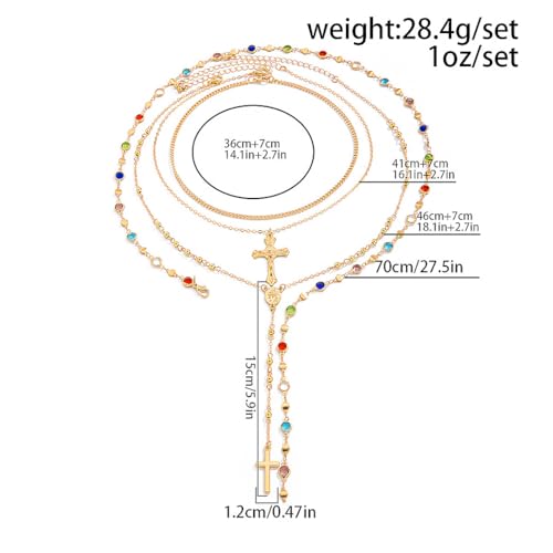 • [CROSS Y NECKLACE] Chapel-approved cross lariat necklace set: Gold-finished crucifix on adjustable chains for Bible study sessions, Sunday services, or Christian wedding guest attire, This gold rosary necklace You can also freely match your favorite necklace for daily wear
