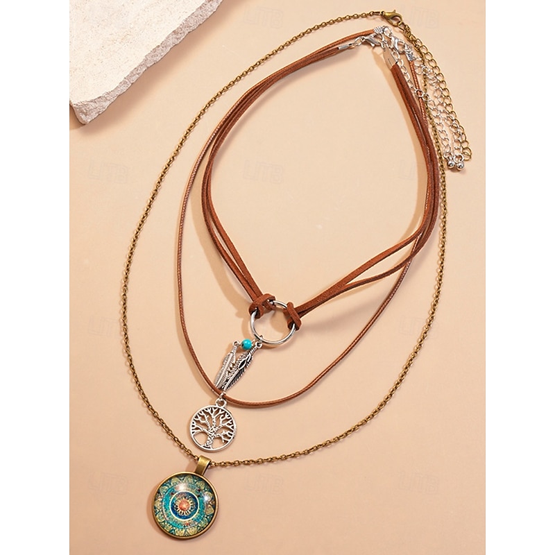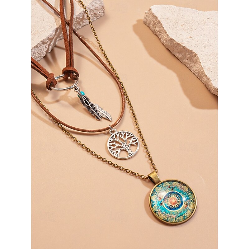 $9.99 - Women's Bohemian Layered Pendant Necklace, Triple Strand Jewelry with Feather, Tree of Life and Vintage Round Charm for Festivals, Parties and Casual Wear 2025. Shop for cheap Women's Necklace online? Buy at lightinthebox.com on sale today!