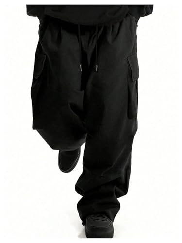More information about OYOANGLE Men's Drawstring Elastic Waist Pockets Cargo Pants Wide Leg Loose Casual Trousers Streetwear