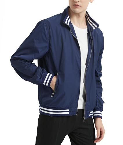 ENVMENST Men's Lightweight Bomber Jacket,Causal Waterproof Windbreaker Jacket for Men Outdoor(Navy Blue)