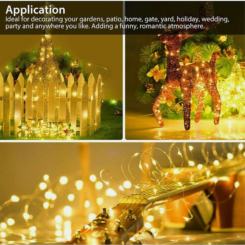 Outdoor Solar String Lights, Solar Powered Fairy Lights With 8 Modes Waterproof Decoration Copper Wire Lights For Patio Yard Trees Christmas Wedding Party 13