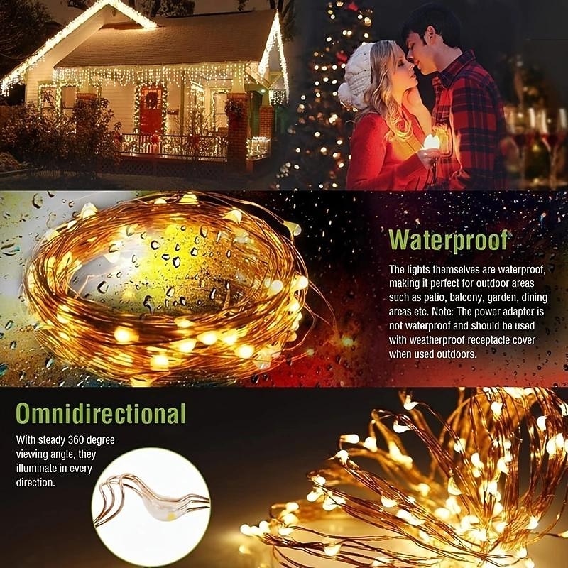 More information about Outdoor Solar String Lights, Solar Powered Fairy Lights With 8 Modes Waterproof Decoration Copper Wire Lights For Patio Yard Trees Christmas Wedding Party