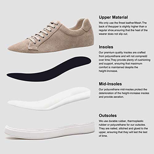 • Height Increase: +6CM/2.36inch, the appearance of the shoes is exactly the same as ordinary nobody will notice you're wearing elevator shoes. Our shoes will help you naturally increase your height in an instant.