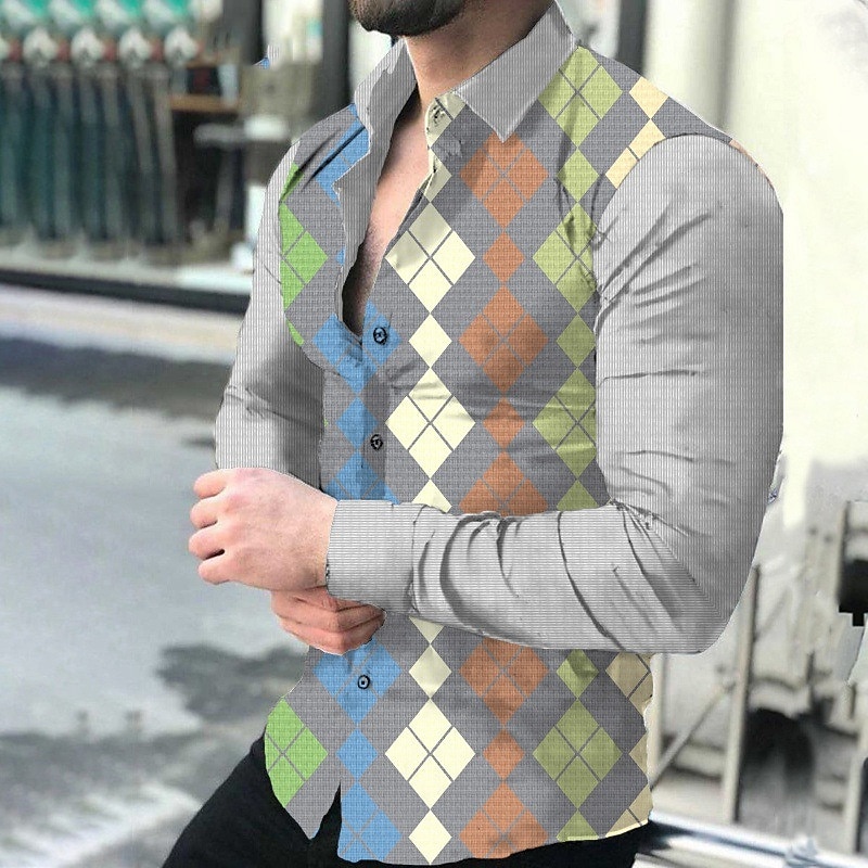 Highlights [Fabric] : Expertly crafted from a blend of soft and durable polyester, this men's shirt ensures comfort and longevity. The smooth fabric offers a breathable feel, making it ideal for fall and winter wear. [Fit] : Designed with a regular fit, this shirt gracefully complements the male physique, providing a stylish yet relaxed silhouette. Available in sizes ranging from S to 5XL, it suits a variety of body types. [Design Highlights] : The shirt features a striking geometric pattern interwoven with plaid and striped elements, lending a contemporary and fashionable edge. The standout turndown collar and button-down front add a refined touch, making it a versatile addition to any wardrobe. [Occasions] : Perfect for daily wear, casual outings, and outdoor activities, this shirt seamlessly transitions from casual to semi-formal settings. Whether heading to a casual gathering or a day outdoors, it makes a bold fashion statement. [Size Range] : Available in an extensive size range from S to 5XL, this shirt caters to a diverse range of wearers, ensuring a comfortable fit for everyone.