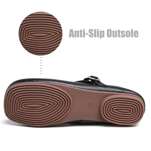 • [Easy on and off]: - The buckle strap makes the mary jane flats adjustable for loose or tight, which is easy to slip on and off.