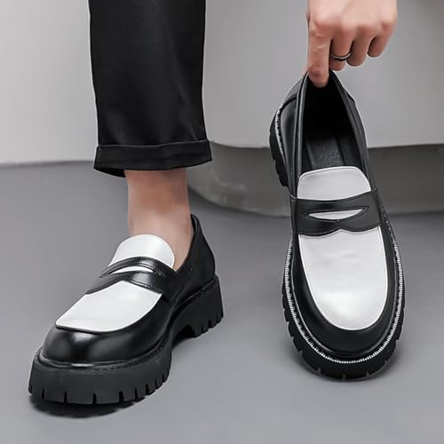 Men's Leather Color Block Chunky Platform Penny Loafers Classic Round Toe Slip-On Lug Sole Business Dress Shoes Daily Work Office Casual Shoes 7