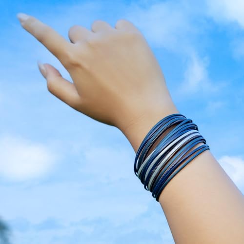 FANCY SHINY Boho Leather Wrap Bracelet Stackable Layered Bangle Cuff with Magnetic Clasp 7