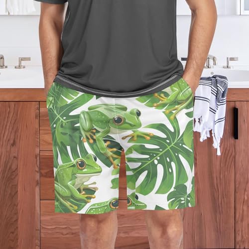 HOT ! Frog and Leaf Print Pajama Bottom Shorts for Men Soft Casual Sleep Lounge Shorts with Pockets S-XXL