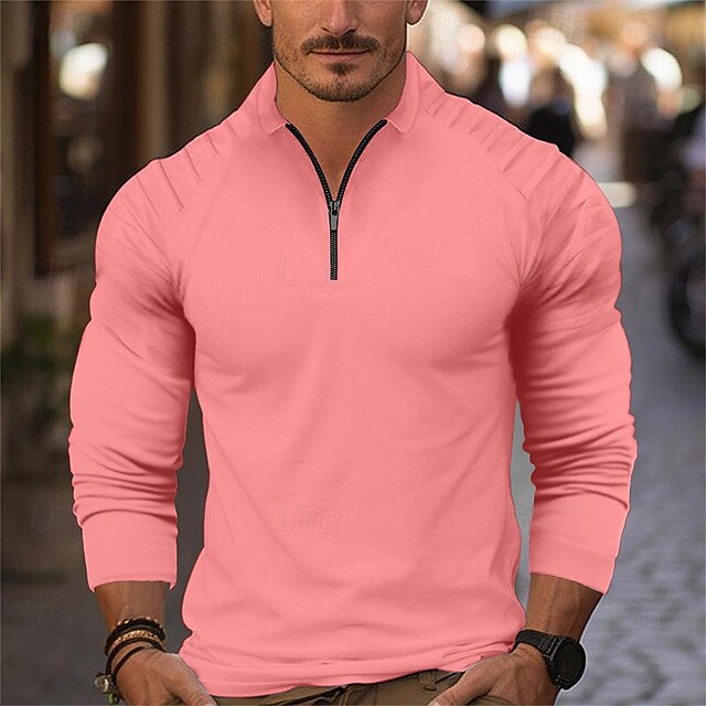 More information about Men's Golf Shirt Golf Polos Shirts Work Casual Lapel Long Sleeve Basic Modern Plain Buttons Spring Fall Regular Fit Black White Pink Navy Blue Brown Army Green Golf Shirt