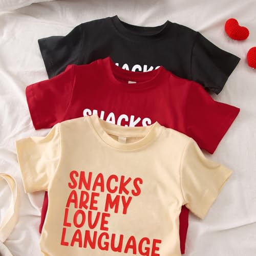 HOT ! Toddler Girl Boy Valentines Shirt Snacks are My Love Language Funny Cute Letter Kids T-Shirts Graphic Outfit
