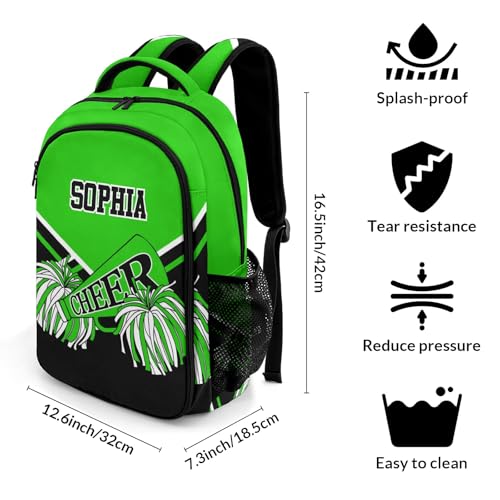 • Personalized Cheerleader Schoolbag Performance: This schoobag is equipped with 2 double zippered main compartment and multiple inside pockets, suit for your computer, iPad, power bank, A4 files, wallet, pens, cards, clothes and more your items. Two mesh side pockets suit for your umbrella,water bottle,and juice box.