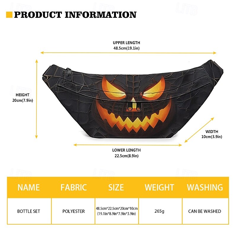 Mne's Spooky Halloween Pumpkin Face Fanny Pack - Ideal for Halloween Parties and Trick-or-Treating 12