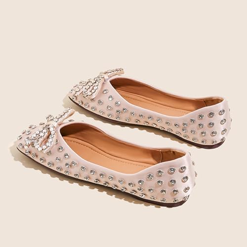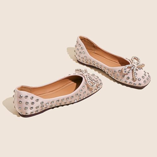 HOT ! Women's Rhinestone Bowknot Casual Flats Elegant Square Toe Rivet Soft Sole Non-Slip Ballet Loafers for Party, Date, Casual