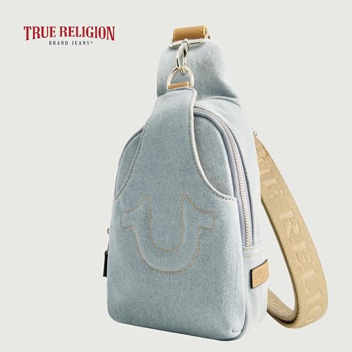 • TRUE RELIGION SLING BAG: Cute and stylish ladies denim over the shoulder bag features a distinctive denim design with our iconic horseshoe logo stitched onto the front, sleek silver hardware, and an adjustable crossbody shoulder strap, making the side bag perfect for work, hiking, beach trips, traveling, or other outdoor activities