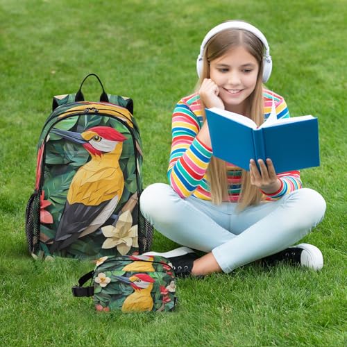 HOT ! Animal Kids Backpack Yellow-headed Woodpecker School Bookbag with Lunch Bag for Boys Girls Preschool Kindergarten Elementary Laptop Daypack