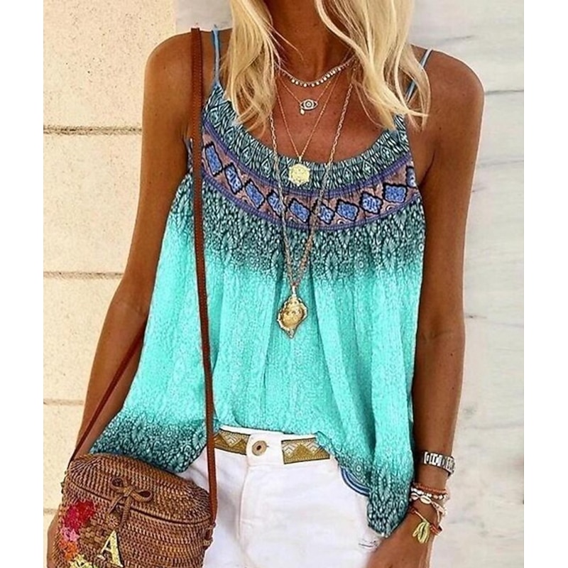 More information about Women's Plus Size Camisole Tank Top Camisole Summer Tops Boho Geometric Sleeveless Strap Holiday Beach Yellow Pink Blue Purple