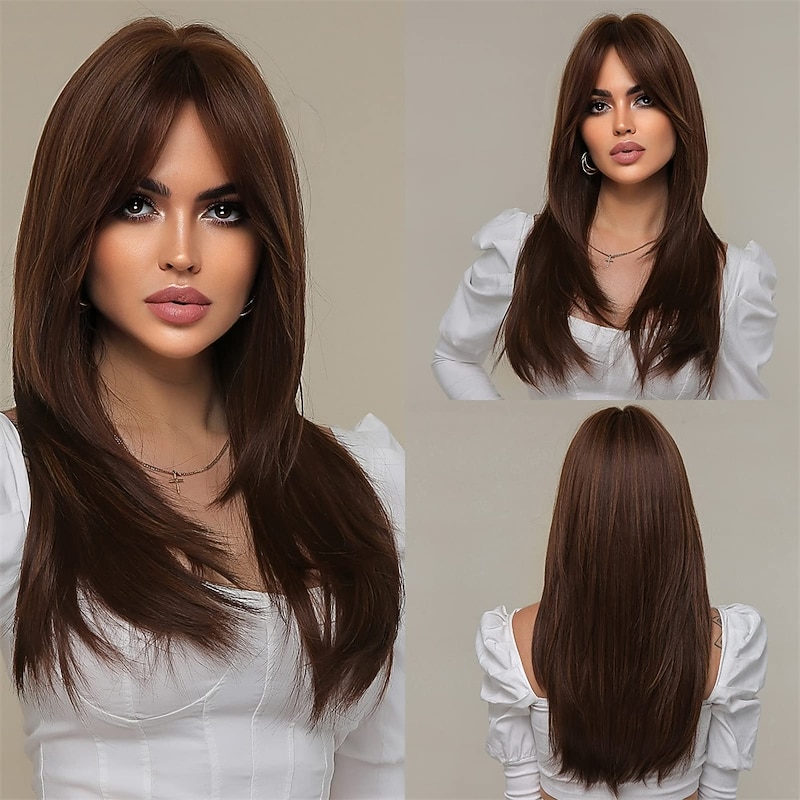 $29.99 - Brown Wigs for WomenLong Layered Wigs with Curtain Bangs Heat Resistant Synthetic Fibre Wigs 2025. Shop for cheap Older Wigs online? Buy at lightinthebox.com on sale today!