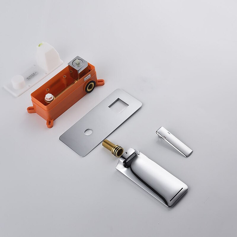 More information about Brass Wall Mounted Bathroom Sink Faucet,Black/Silvery Waterfall Painted Finishes Bath Taps with Hot and Cold Switch