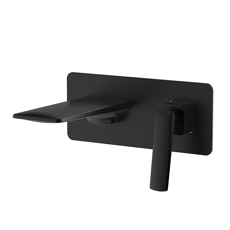 Brass Wall Mounted Bathroom Sink Faucet,Black/Silvery Waterfall Painted Finishes Bath Taps with Hot and Cold Switch 1